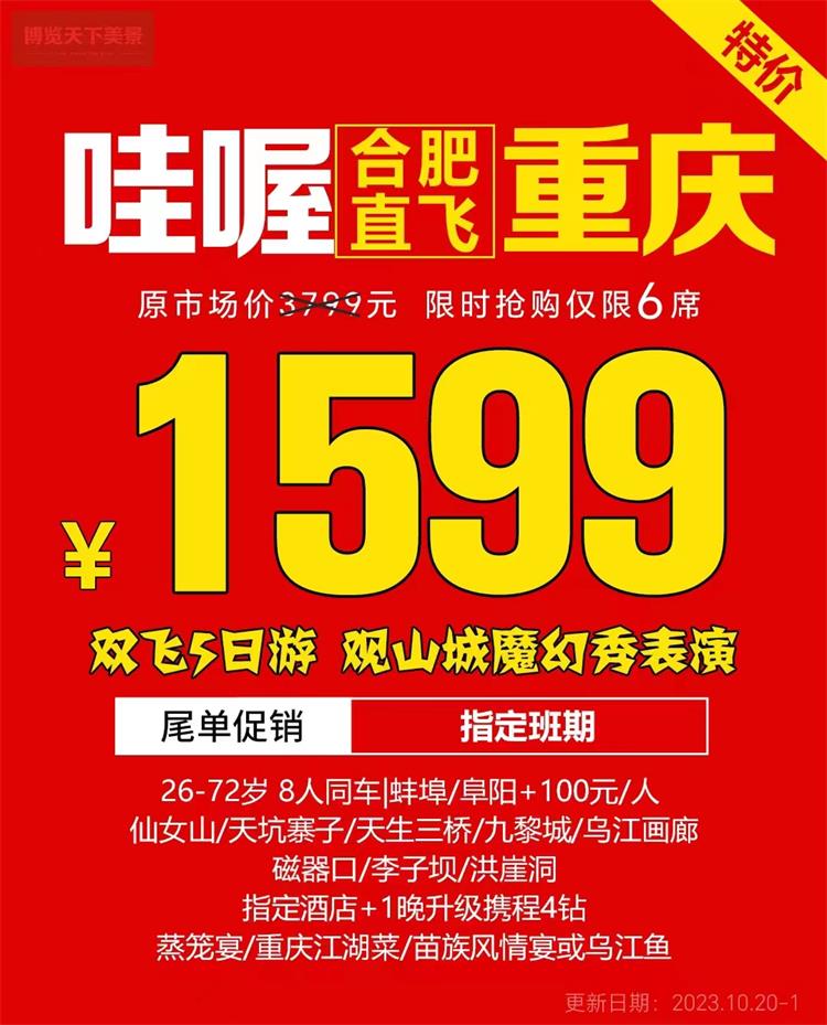 哇喔合肥直飞重庆 双飞5日